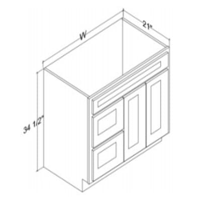 Distinctive Highland Timber Shaker - 36"W X 34.5"H X 21"D - Vanity Sink Drawer Base Cabinets Double Door